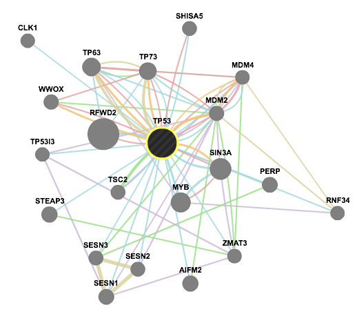 GeneMANIA finds other genes that are related to a set of input genes, using a very large set of functional association data. Association data include protein and genetic interactions, pathways, co-expression, co-localization and protein domain similarity.